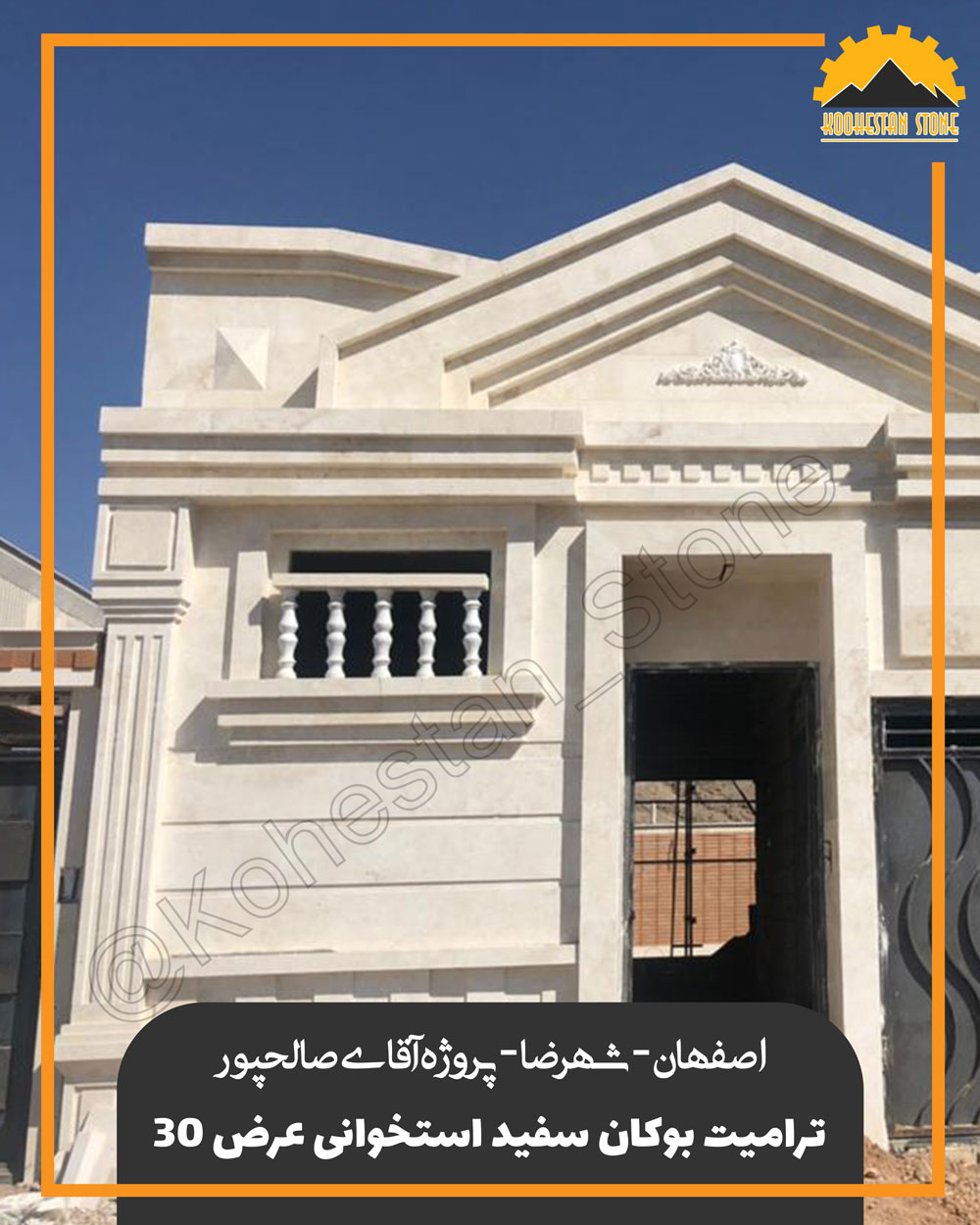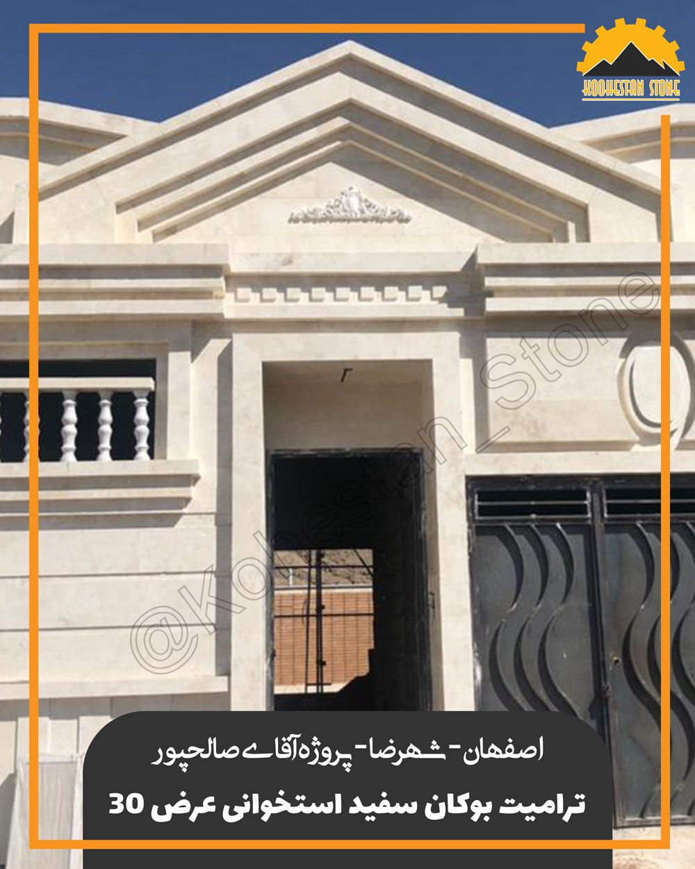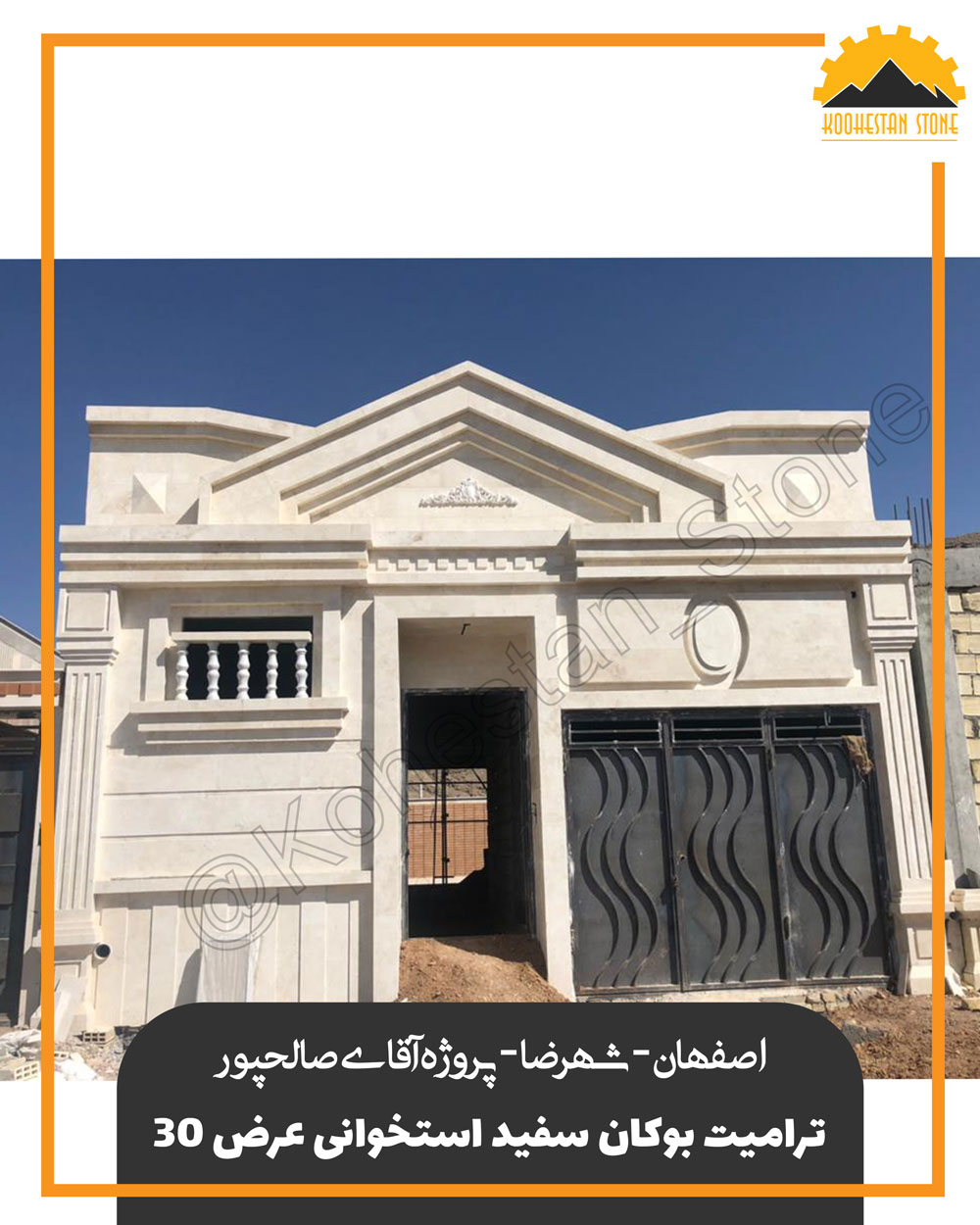 آدرس پروژه : اصفهان، شهررضا کارفرما پروژه : آقای صالح پور سنگ نما : ترامیت بوکان سفید استخوانی عرض ۳۰
